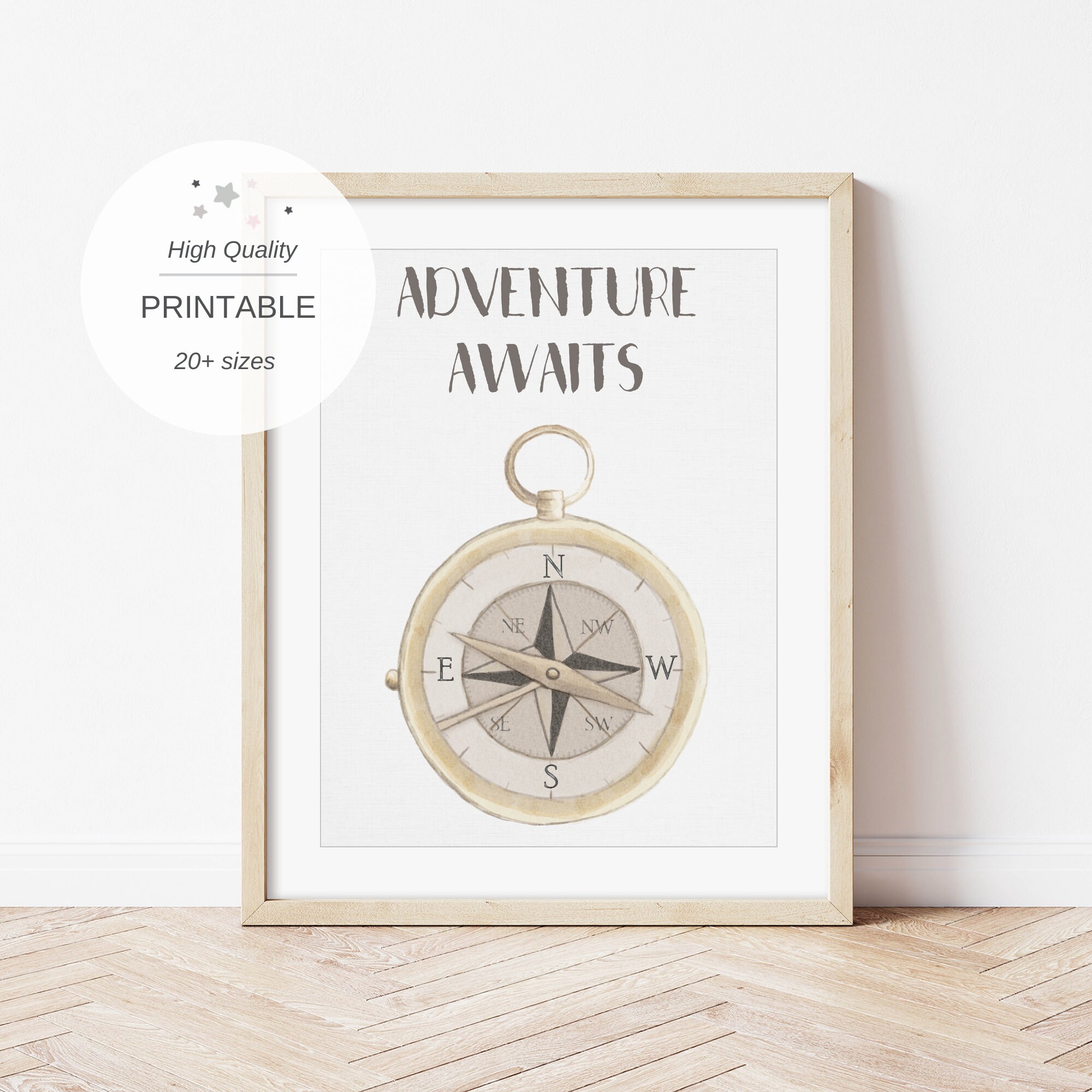 Watercolor Compass Adventure Awaits Print Boys Compass Etsy Ireland